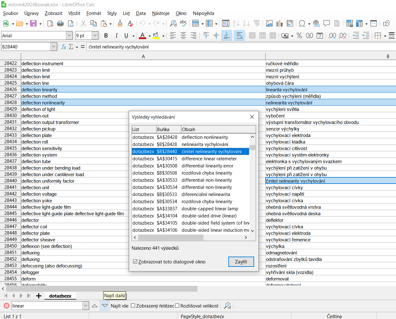 Jen si to představte, pokud by vám nyní vyslovení každého hesla zabralo na obou stranách, anglické i té české, pokaždé dvě vteřiny, máte v kuse co dělat bezmála celý týden! Muselo však padnout rozhodnutí: rok 2024 bude vážně poslední. Zkrátka, konečný termín. Roky přibývaly a v překladech, které začaly být stále častěji strojovou záležitostí, navíc záhy nastoupila umělá inteligence. „‚Artificial Intelligence‘, zkráceně ‚AI‘, česky též ‚UI‘“, nechává se opět unést. Ale pozor, nezaměňovat s uživatelským rozhraním, ani součinem stejnosměrného napětí a proudu. Slovník, tedy nyní spíše již rozsáhlou databázi systematicky shromážděných a zpracovaných pojmů, autor ještě několikrát pečlivě prošel a upravoval, někdy opravoval, jindy zase škrtal, až vše 24. října loňského roku nadobro uzavřel. A jak slíbil, výsledné dvojice anglicko – českých termínů či odborných názvů zpřístupnil [1] v podobě textového či pohodlnějšího excelovského souboru volně ke stažení, tzv. „free download“. Uživateli je navíc dovoleno, aby celoživotní dílo bratislavského technika libovolně užíval a v případě potřeby začlenil i do své vlastní báze. Naštěstí je už nemusí stahovat do žádné stokilové diskové paměti, kde by se celé s trochou štěstí vešlo pouze jednou.