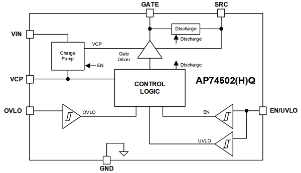 Nabídka známého výrobce se v červenci rozrostla o dvojici 80V kontrolérů s předpoklady pro práci v automobilovém průmyslu dle AEC-Q100, třídy 1, kde společně s vnějšími tranzistory FET zajistí spolehlivou a robustní ochranu proti přepólování či přepětí. Uplatní se u pokročilých asistenčních systémů řidiče ADAS, řídicích modulů, v infotainmentu, osvětlení, při nabíjení cestou USB apod. Neztratí se ani v oblasti průmyslové automatizace, typicky u PLC. Seznamte se, integrované obvody AP74502Q, resp. AP74502HQ v jednoduchých pouzdrech typu SOT28 s osmi vývody. Odlišující koncovka „H“ zde souvisí se špičkovým proudem, ke kterému se ještě dostaneme.