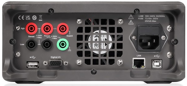 Výrobce pro oba modely, jak u jednoduchého SMM3311X, tak i dvoukanálového SMU SMM3312X, a bez ohledu na provoz v režimu zdroje či měření, počítá s napěťovým rozlišením 100 nV (slovy nanovoltů), resp. 10 fA (femtoampérů, tedy deset na minus patnáctou) v případě toku elektronů. K tomu pak z pohledu stejnosměrného zdroje napájení přidává rozsahy ±210 V nebo ±3,03 A, které lze v případě pulzů dále povýšit až na více než deset ampér. Tady se pak s rozlišením DC zdroje dostáváme na 10 μA, což poplatně nejvyššímu napětí odpovídá zase jednomu stu mikrovoltů. Samozřejmostí již bude aktivní chlazení s výdechy ventilátoru na zadní straně přístroje [3].