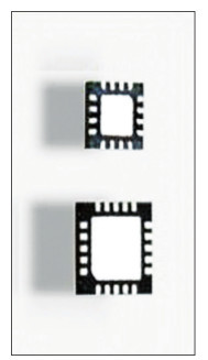 Další výzvou je vlastní velikost otvoru v šabloně. Obr. 2 ukazuje 3mm a 4mm QFN pouzdro součástky. Běžná velikost apertury okénka v šabloně začíná u šířky 0,175 mm a délky 0,4 mm, což může s ohledem na podíl protlačené pájecí pasty představovat při procesu tisku určitý problém. Další výzvou pak je provedení nepájivé masky na desce plošných spojů.