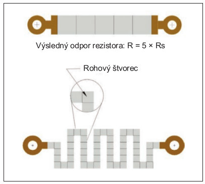 kde R je požadovaná hodnota rezistora, Rs – plošný odpor RCM materiálu, L – dĺžka rezistora, W – šírka rezistora (obr. 2).