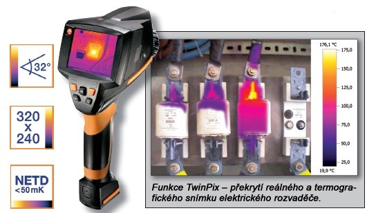 Termokamery jsou vybaveny adresářovou strukturou pořízených termogramů. To výrazně usnadňuje orientaci v pořízených termogramech. Nízká vzdálenost ostření umožňuje snadné měření i SMD součástek. Termokamery testo mají teplotní citlivost od 0,08 °C až po 0,05 °C. Můžete tak nalézt nejen chyby, ale také analyzovat přenos tepla od jednotlivých součástek.