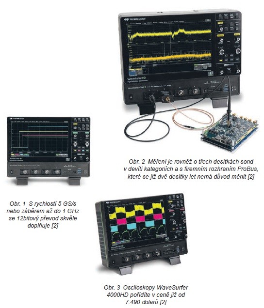 Řečí čísel pak novinky z hlediska základního šumu vykážou oproti srovnatelné technice vybavené stejně tak 12bitovými ADC 2,5krát lepší výsledky, zatímco v porovnání s desetibitovou „konkurencí“ si polepšíme dokonce osminásobně. Místo (ne)přesnosti definované při nastavení zisku 1 mV/dílek na úrovni 2,5 % lze navíc počítat s chybou jen půl procenta. Teledyne LeCroy nezapomíná ani na řadu doplňků, např. ve stylu volitelného 16kanálového MSO, generátoru AWG, čítače či spektrálního analyzátoru [3].