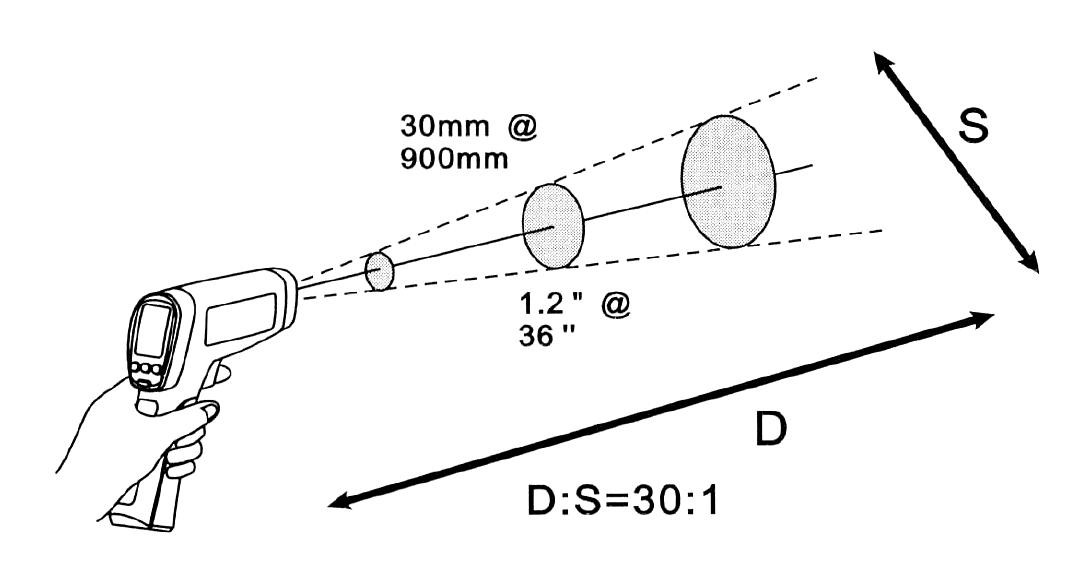 Jeden z nejčastějších dotazů, na který neexistuje jednoznačná odpověď. Teoreticky totiž vzdálenost není omezená, ale je třeba si uvědomit, že při měření IR teploměrem neměříme teplotu bodu, ale plochy! Čidlo totiž snímá teplotu z kuželu, jehož parametry určuje optická charakteristika (obr. 1). Je to poměr vzdálenosti k průměru měřené plochy. Například optická charakteristika 12 : 1 znamená, že z 12 m měříme teplotu plochy o průměru 1 m. Čím vyšší je první číslo (20 : 1, 30 : 1, 50 : 1), tím je kužel ostřejší a lze měřit na větší vzdálenosti. Abychom tedy věděli, co vlastně měříme, je nutné věnovat optické charakteristice pozornost. Všechny lepší přístroje jsou vybaveny laserem k zaměření středu měřené plochy. Velice snadno totiž může nastat situace, kdy je měřená plocha větší než předmět, který chceme měřit, a výslednou teplotu nám zkresluje pozadí měřeného předmětu (obr. 1). Jediným možným řešením této situace je přiblížit teploměr více k měřenému předmětu.