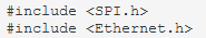 Kód serverové aplikace začíná přidáním hlavičkových souborů nezbytných k navázání SPI komunikace (moduly WIZnet si vyměňují data s mikrokontrolérem pomocí tohoto protokolu) a hlavičkových souborů knihovny Ethernet: