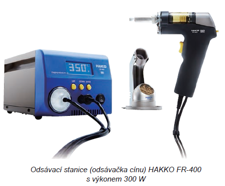 Odpájecí stanice FR-400 s vysokým výkonem je také v sortimentu HAKKO. Jedná se o ruční a přenosný odpájecí nástroj s vynikající obnovou tepla, s výkonem 320 W. Umožňuje rychlé a bezpečné odpájení dokonce i při vysoké tepelné kapacitě a vysoce tepelně ztrátové DPS.