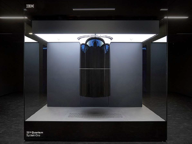 - IBM Q System One je první komerční kvantový počítač s 20 qubity, který byl představen v lednu 2019. Jeho první umístění propagovala poté firma 15. června 2021 ve své centrále v německém Ehningenu – viz obr. 2.