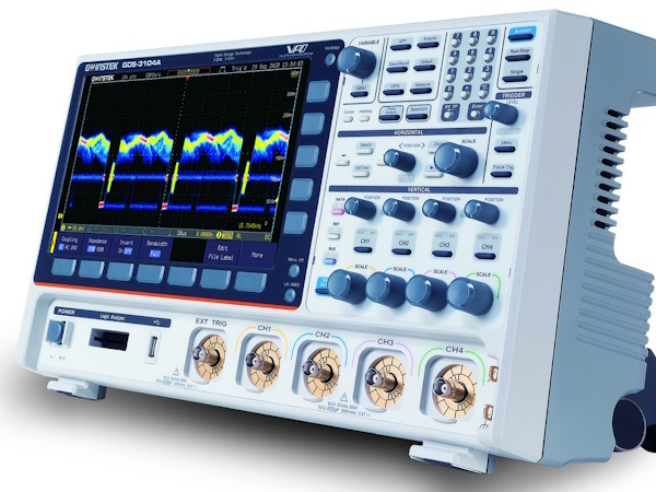 Aktuální novinky rodiny GDS-3000A budou celkem dvě. „Výkladní skříň“ ve verzi GDS-3102A počítá s dvojicí analogových vstupů, zatímco GDS-3104A dále nabízí dvojnásobný počet kanálů. Výrobce uvádí vzorkovací rychlost 5 GS/s, resp. 2,5 giga při uvážení všech vstupů. K tomu si přičtěte paměť o velikosti 200 miliónů bodů na kanál, 200 000 wfms/s, TFT LCD s úhlopříčkou 10,2 palce nebo např. 38 různých měření.