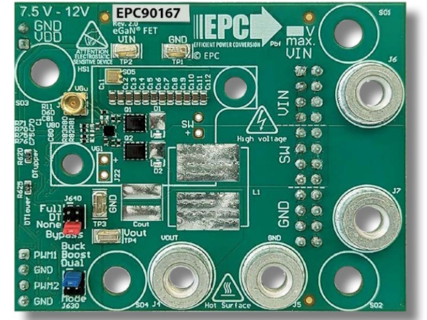 Tranzistory, navržené speciálně za účelem DC/DC konverze napájení, dostaneme v pouzdrech typu PQFN o velikosti 3,3 × 2,6 mm, pro které v EPC rovněž slibují prvotřídní ukazatel (FoM) Ron×Qg, dosahující 12,6 mΩ.nC. Vývojáři mohou těžit i z referenčního návrhu EPC90167 – kompletní desky polovičního můstku, včetně buzení a dalších nezbytných prvků.